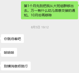 如果不换班,今年我应该是大2班,但是统筹安排到小2班去了。为了新学期资料交接(学生信息,新老师一定有),我申请还是留在大班组群里
