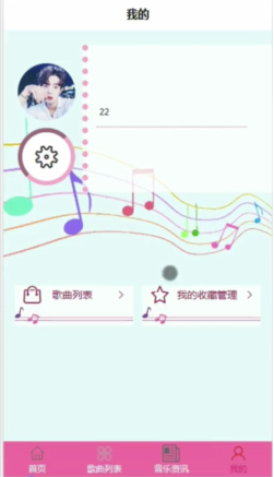 用户登录成功后,点击“我的”可以对个人中心、歌曲列表、我的收藏管理等进行详细管理。用户功能界面如图5-5所示。