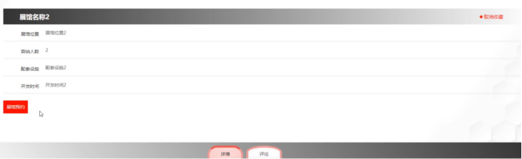 展馆信息:在展馆信息页面的输入栏中输入展馆名称、展馆位置进行查询可以查看到展馆详细信息,并根据应该对展馆信息进行预约、评论或收藏操作;展馆信息页面如图5-3所示: