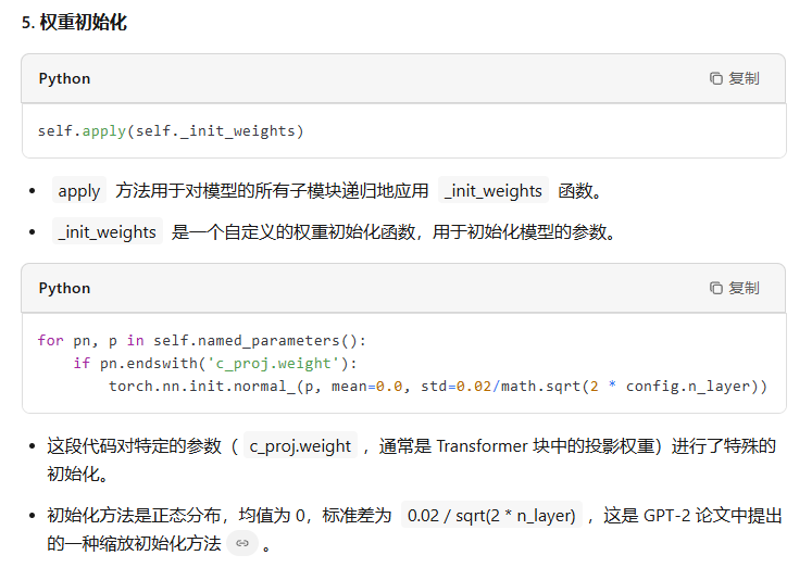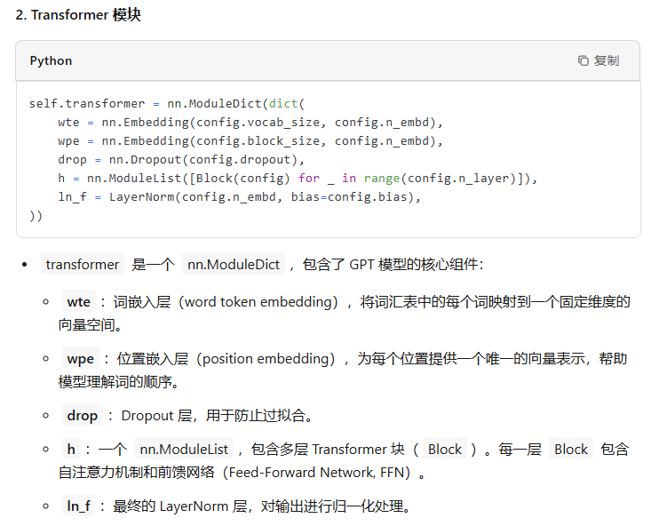 首先需要构建token embedding和位置embedding,把它们叠加起来后过一个dropout,然后就可以送入transformer的block中了。