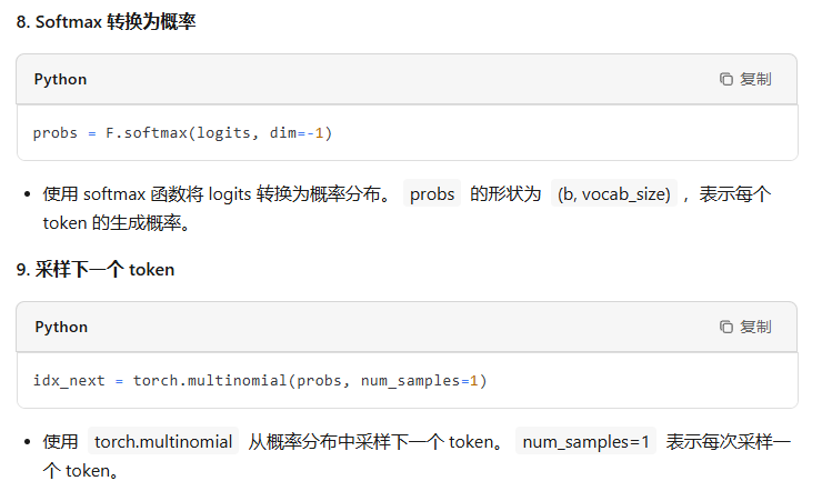 [10, 20, 30],除以温度参数 0.5 后变为[20, 40, 60],经过 softmax 后,概率分布会更加集中在高概率的 token 上。temperature = 1:保持原始分布当温度参数等于 1 时,logits 不变,模型的输出概率分布保持原始的预测结果。