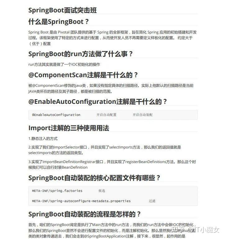 - 学习方法:回答框架相关面试题,如 “Spring 的 IOC 和 AOP 是什么,如何实现?”“Spring Boot 的自动配置原理是什么?”,结合实际项目代码,理解框架的运用场景和优势,同时允许阅读框架的官方文档和源码,了解其底层实现。