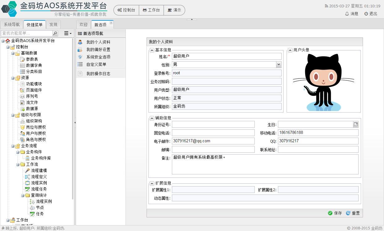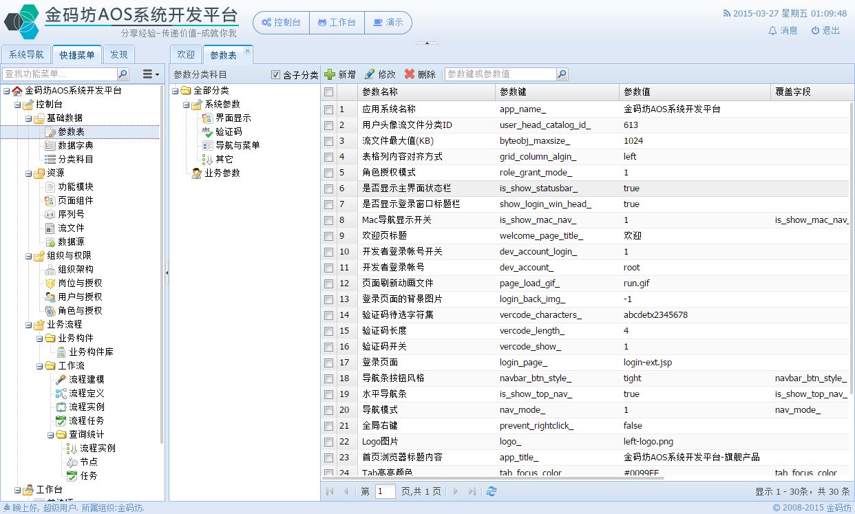 AOS应用基础平台#AOS开发平台# 实现了在用户权限范围内自己定义的快捷菜单的导航展示。提供了2种快捷菜单布局风格(树状、平铺)的设置、提供了用户登录后的缺省导航卡片的设置(系统导航、快捷菜单、发现)。