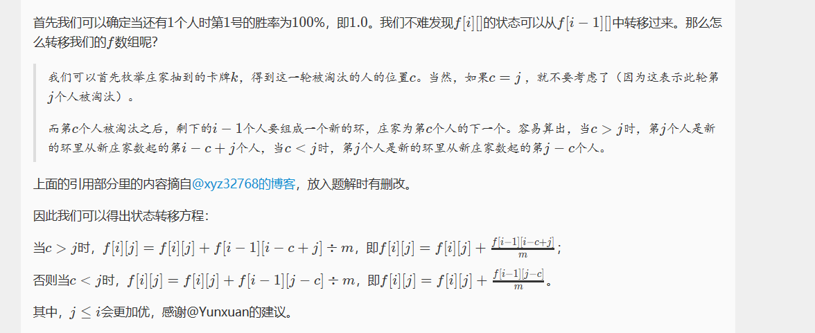 double dp[60][60];//表示剩i个时从庄家数第j个的获胜概率