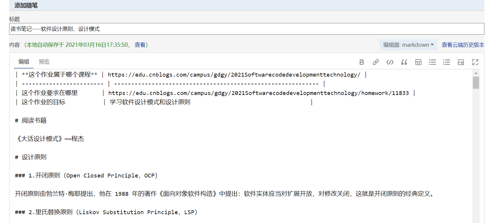| 这个作业的目标 | 学习软件设计模式和设计原则 |