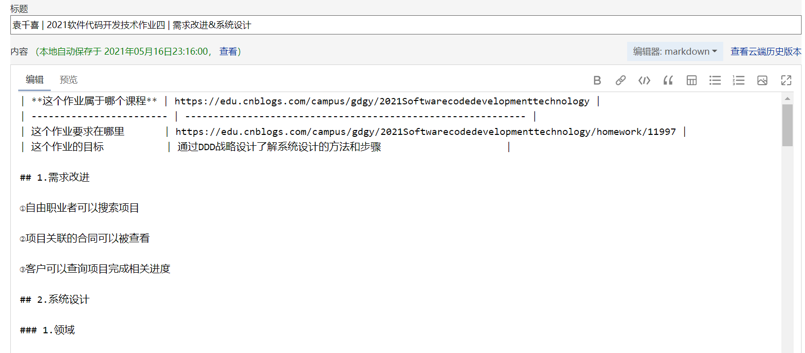 | 这个作业的目标 | 通过DDD战略设计了解系统设计的方法和步骤 |