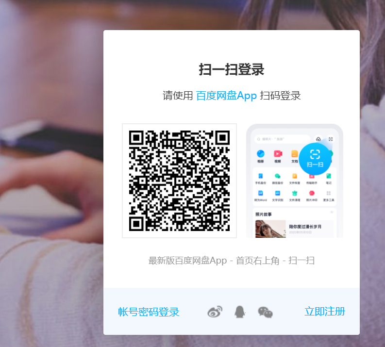 ①虽然登录界面做的很好,但是如果我比较懒觉得密码账号很难输入,为什么不像百度网盘一样搞一个手机app扫描登录,万一用户密码太长不想输入。