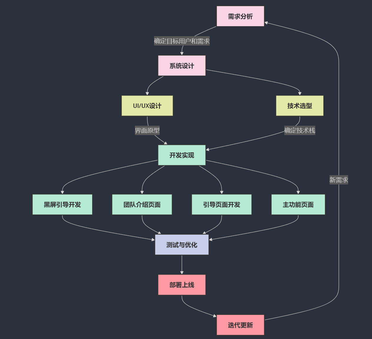 (需求分析→UI设计→技术选型→开发→测试→部署→迭代)