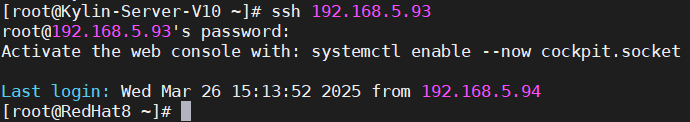 以允许地址和地址段192.168.5.94、192.168.5.0/24远程访问ssh为例: