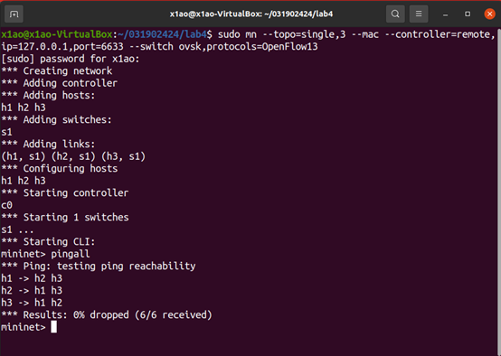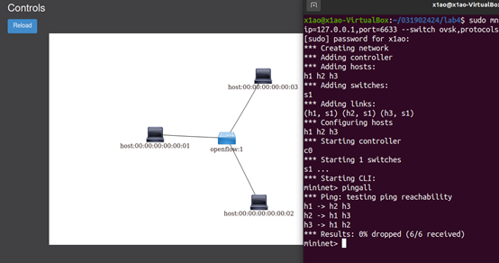 2.利用Mininet平台搭建下图所示网络拓扑,并连接OpenDaylight控制器;