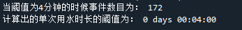 print('当阈值为4分钟的时候事件数目为:',sj.shape[0])