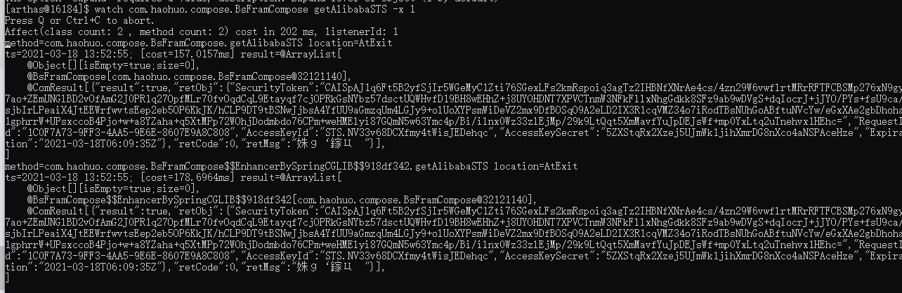 命令:watch com.haohuo.compose.BsFramCompose getAlibabaSTS -x