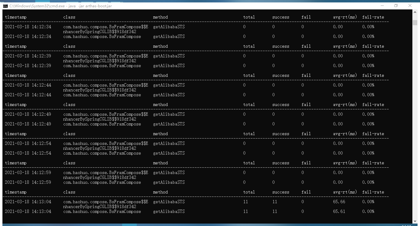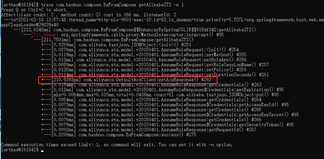 命令:trace com.haohuo.compose.BsFramCompose getAlibabaSTS -n 1