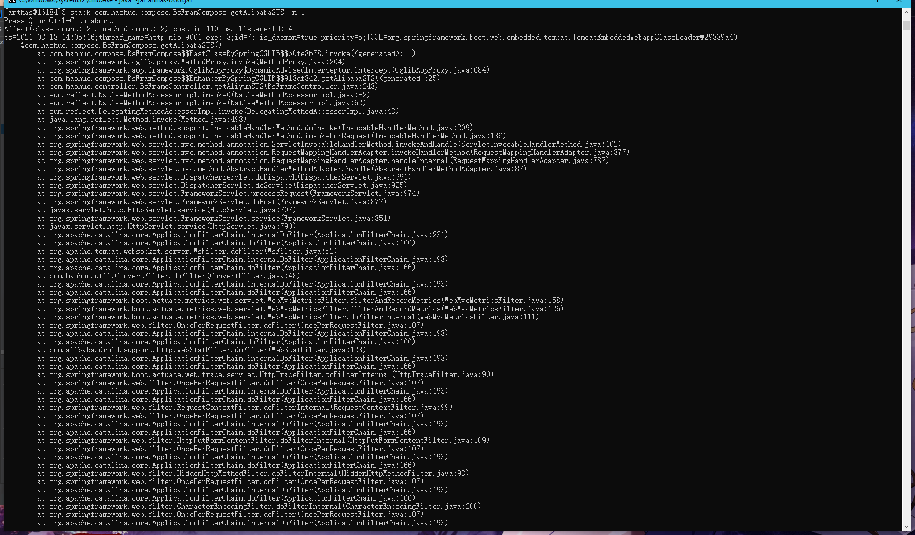 举个栗子:这几天getAlibabaSTS执行时间过长,导致服务器压力较大,我们使用这个命令来查看一下这个方法