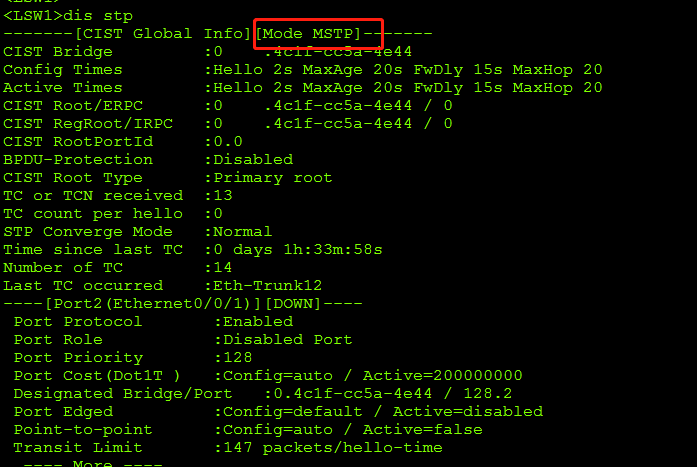 执行dis stp命令 ,后面也可以带接口或者 brief