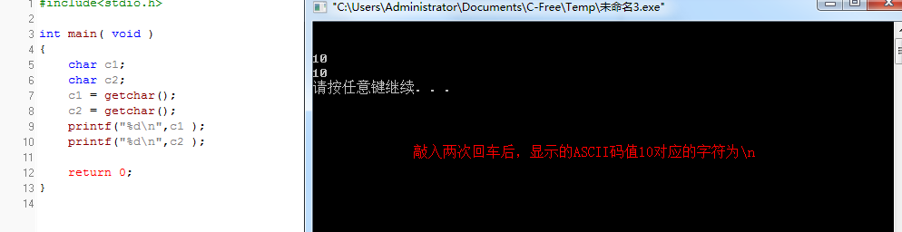 1 网上查到的信息,enter键可以有对应\n\r、\r\n、\r、\n) ,首先确认在C语言中getchar()获取的是什么字符(’\n‘)