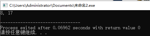 1 #include <stdio.h> 2 int func(int, int); 3 int main() { 4 int k = 4, m = 1, p1, p2; 5 p1 = func(k, m); 6 p2 = func(k, m); 7 8 printf("%d, %d\n", p1, p2); 9 10 return 0; 11 } 12 int func(int a, int b) { 13 static int m = 0, i = 2; 14 i += m + 1; 15 m = i + a + b; 16 return m; 17 }