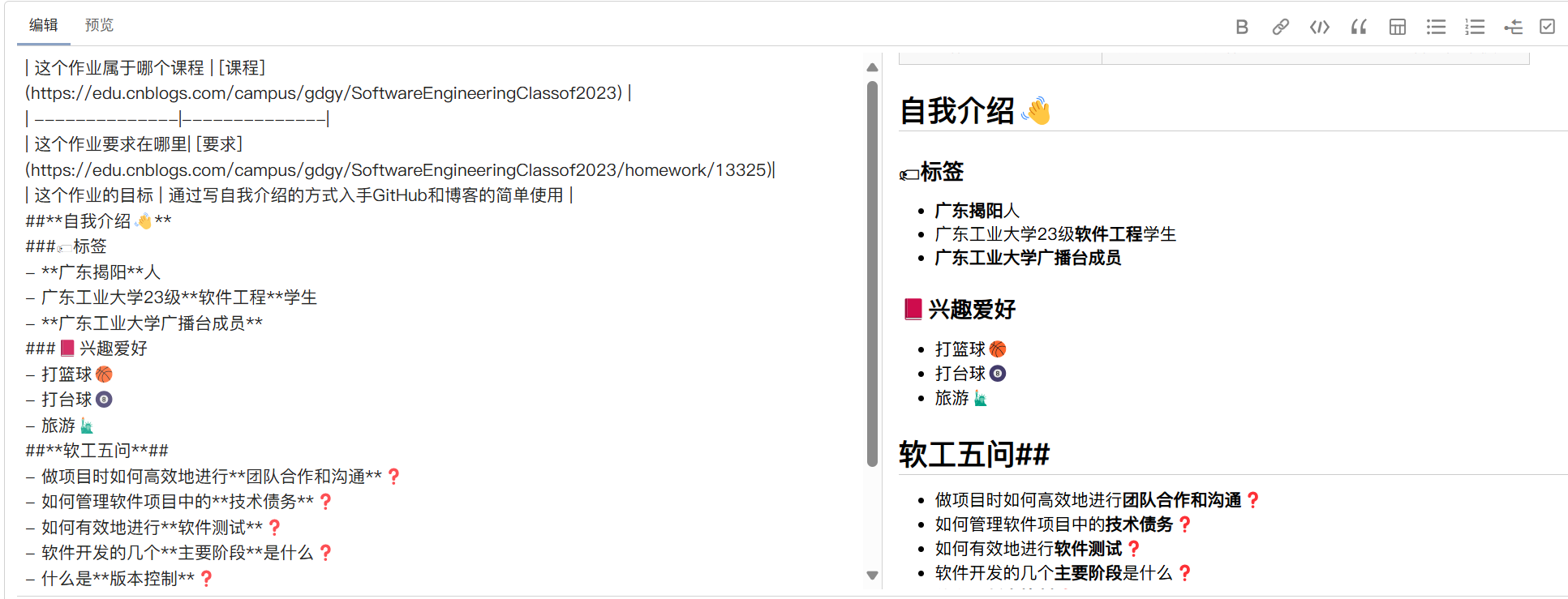 | 这个作业的目标 | 通过写自我介绍的方式入手GitHub和博客的简单使用 |