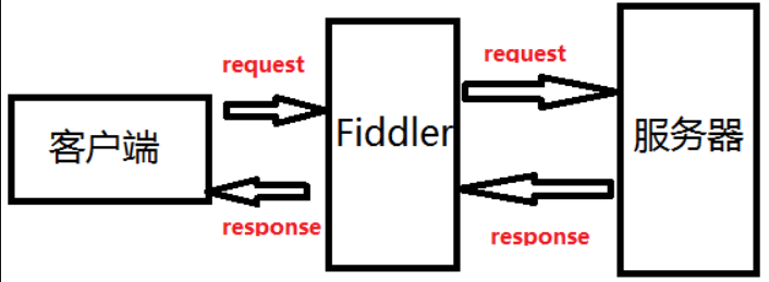 工作原理:既然是代理,也就是说:客户端的所有请求都要先经过Fiddler,然后转发到相应的服务器,反之,服务器端的所有响应,也都会先经过Fiddler然后发送到客户端,具体过程如图: