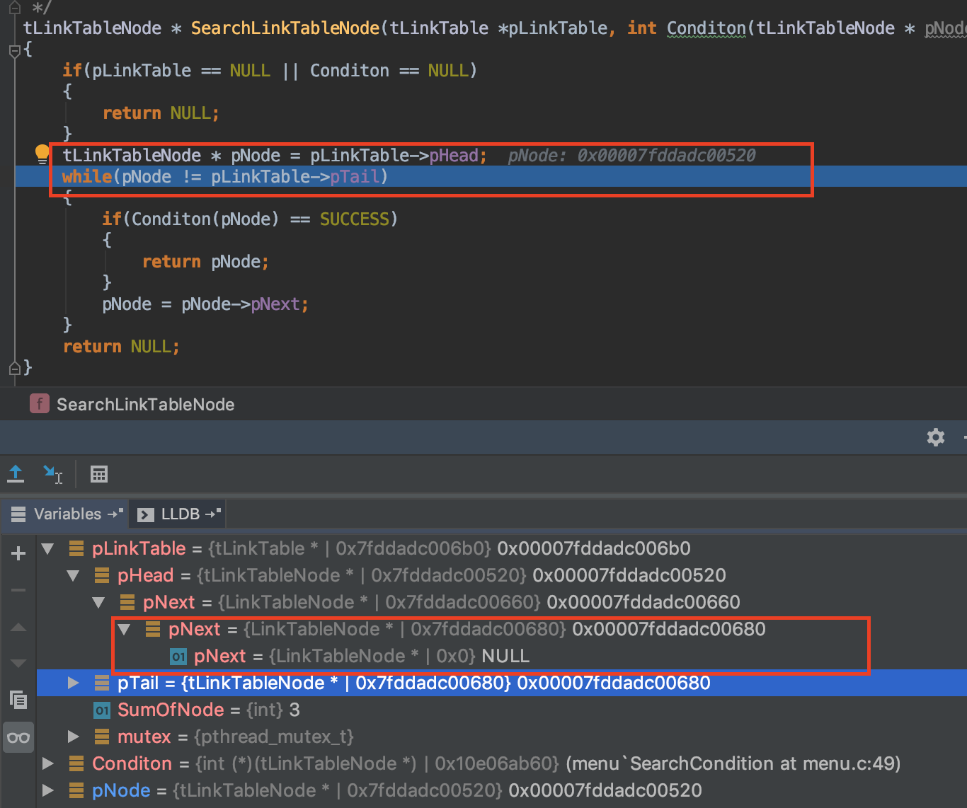 //将SearchCondition作为函数指针参数提供给函数SearchLinkTableNode;