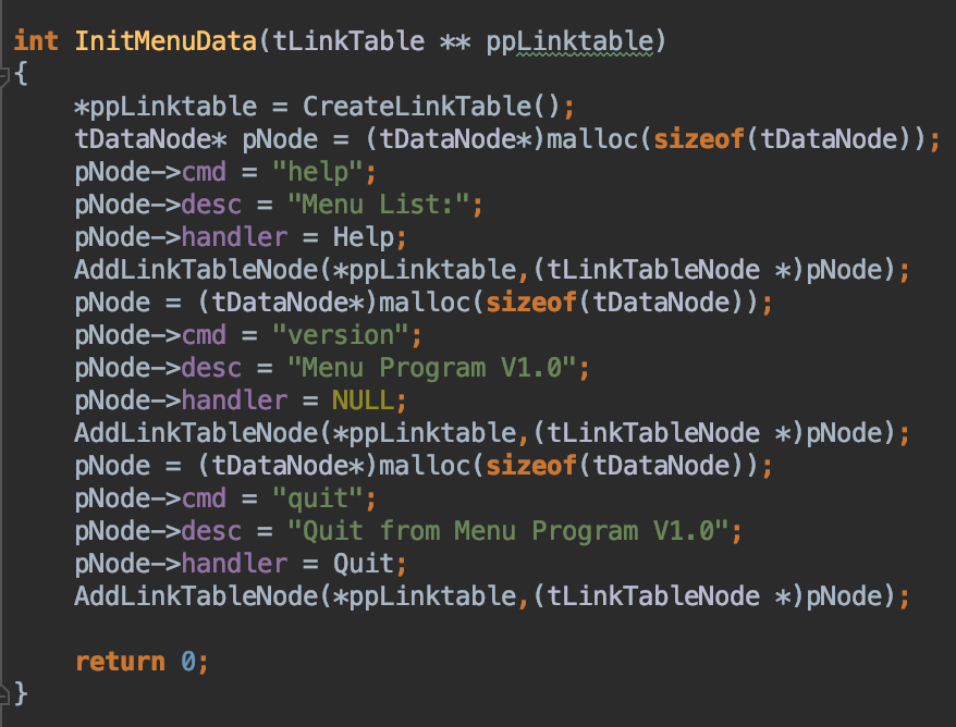 //根据menu.c中的InitMenuData,我们可以知道"quit"指令是pLinkTable的第三个节点;