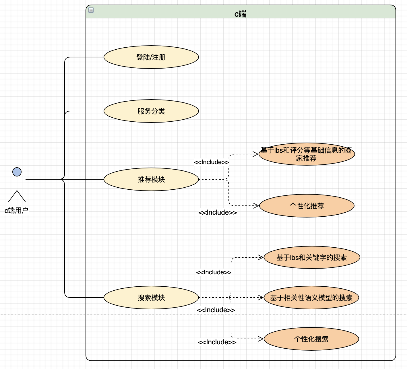 | 1.3 | c端用户 | 搜索栏中输入关键字进行搜索 | 关键字 | 服务器 |