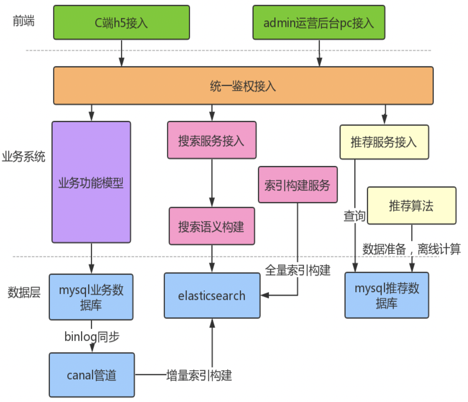 - 后端存储模块:用于数据库,canal管道数据同步,elasticsearch中间件建设