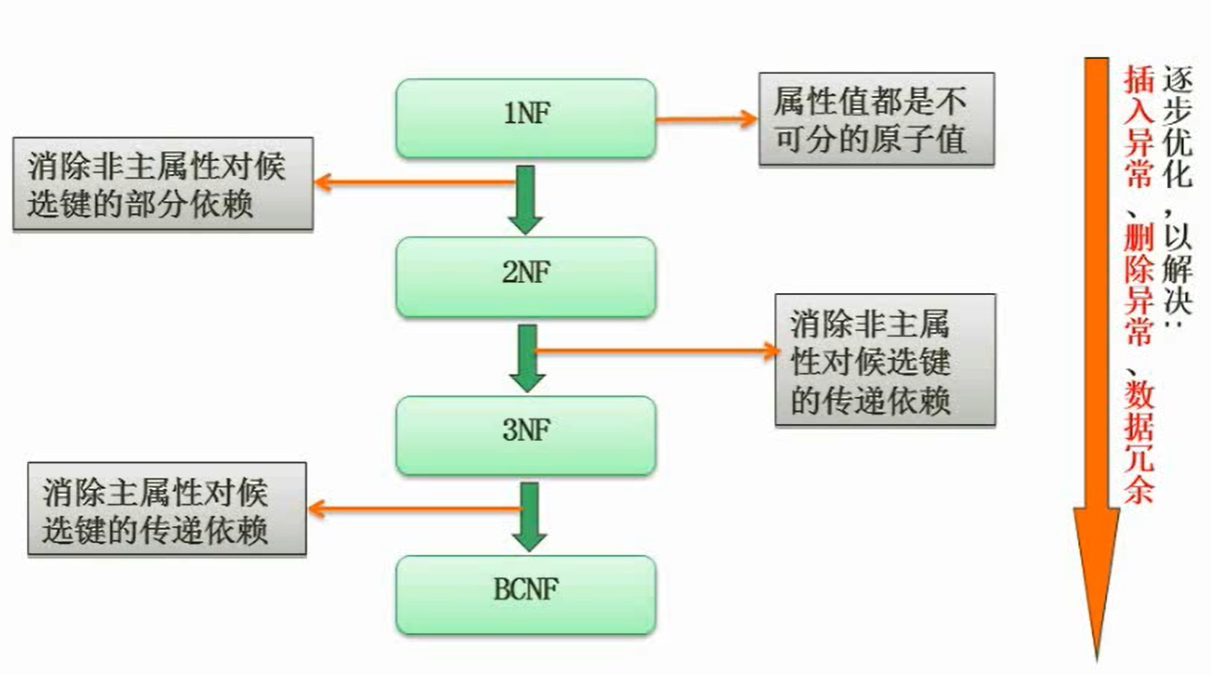 第一范式(1NF):在关系模式R中,当且仅当所有域只包含原子值,即每个分量都是不可再分的数据项,则称R是第一范式。