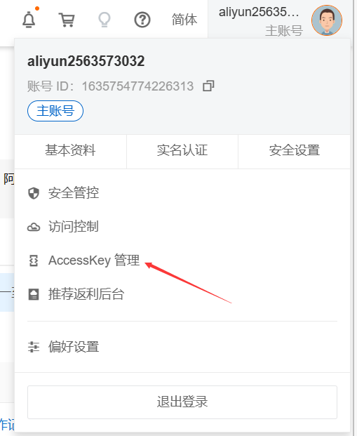 首先进入阿里云获得AccessKeyID 和 AccessKeySecret