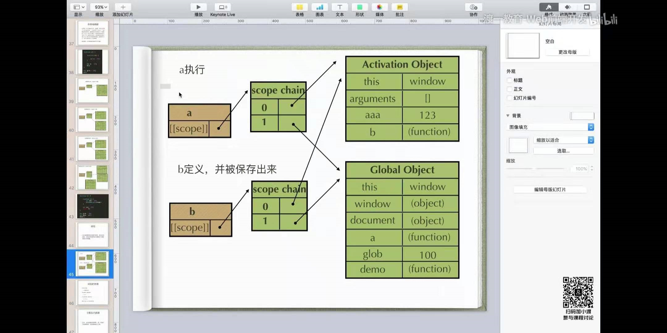 作用域链:[ [scope ] ]中所存储的执行期上下文对象的集合,这个集合呈链式链接,我们把这种链式链接叫做作用域链。