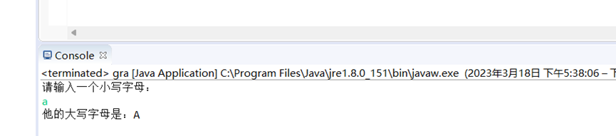 6定义一个任意的大写字母A~Z,转换为小写字母(知识点:变量和运算符综合应用)
