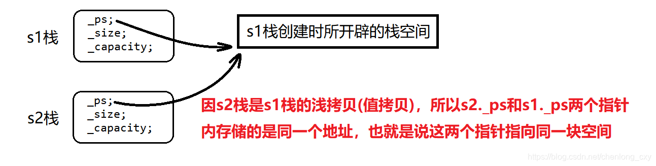 【1】栈(Stack)这样的类,编译器自动生成的拷贝构造函数就不能满足我们的需求。两个栈的地址是一样的,浅拷贝会导致析构两次、程序崩溃等问题。