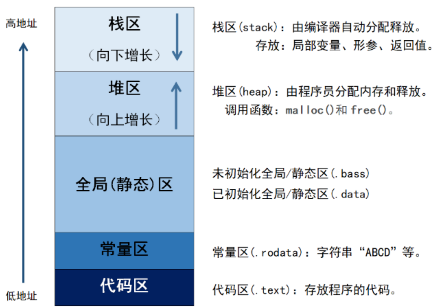 然后是可以变化的堆区,堆区是从下往上增长的,存放牛马们自己分配的内存,可以灵活变化