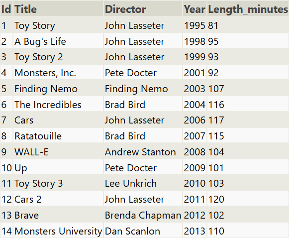 SELECT * FROM movies WHERE director = "John Lasseter";