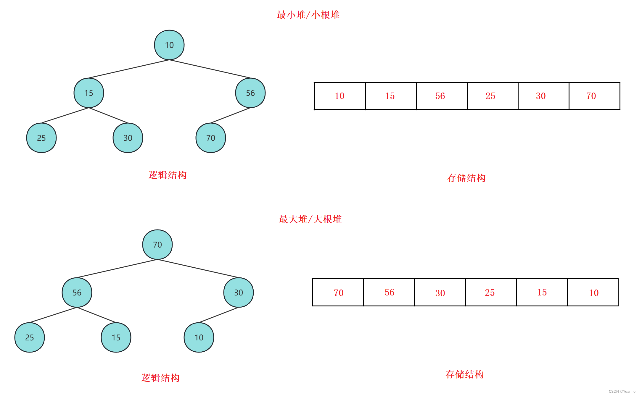 ②堆中某个节点的值总是小于或等于其父节点的值,称为最大堆/大根堆