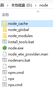 1、在nodejs安装路径下,新建node_global和node_cache两个文件夹