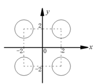 圆塔位置如图所示,现输入任意坐标,该点坐标在任意一个圆塔内,则输出圆塔的高度;若该点不在圆塔内,则输出0。
