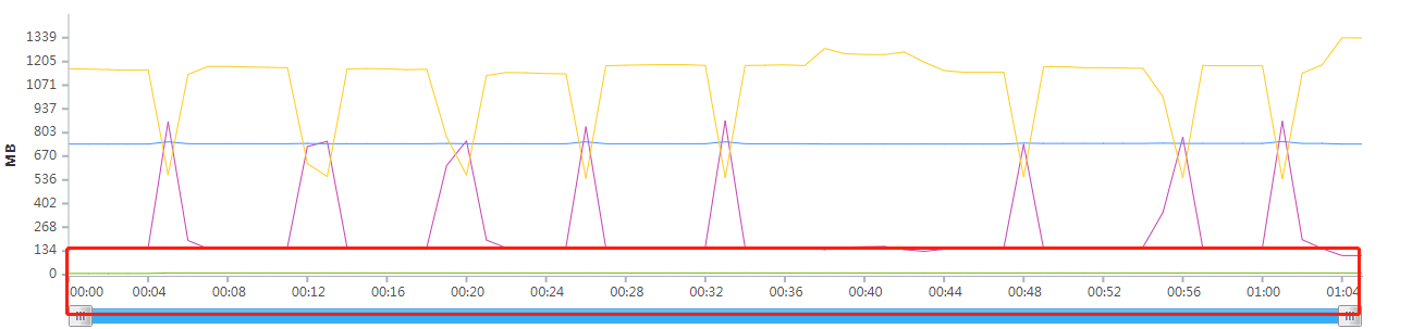 由于stack上分配内存可以将所有分配内存的地址以及大小都预先告知给系统,系统内存调度模块就能感知把握全程,因此分配内存和释放内存都非常快,比如heap上new耗时70ms,而stack上分配内存是0ms,只有程序加载的耗时。为此,我将所有的new操作转换为临时数组,再次测试发现内存每次都能即时释放,如下图所示: