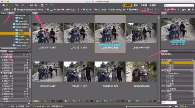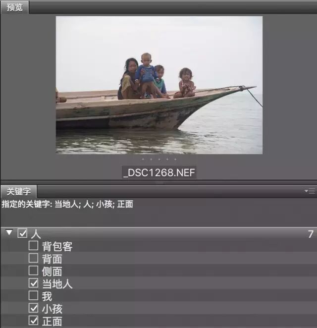 关键字面板在Bridge的右下角,你可以在此提前预设一些关键字。在浏览照片时,给相关的关键字前面打上勾。相应的关键字就会保存在照片文件中(关键字会直接写入照片文件,所以Bridge打的关键字,其他软件也能读出)。