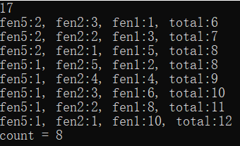 题目内容描述:将一笔零钱换成5分、2分和1分的硬币,要求每种硬币至少有一枚,有几种不同的换法?