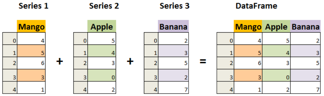 Series由索引(index)和列组成,函数如下: