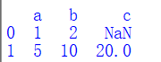 #使用字典创建 import pandas as pd data = [{'a':1, 'b':2},{'a':5, 'b':10, 'c':20}] df = pd.DataFrame(data) print(df)