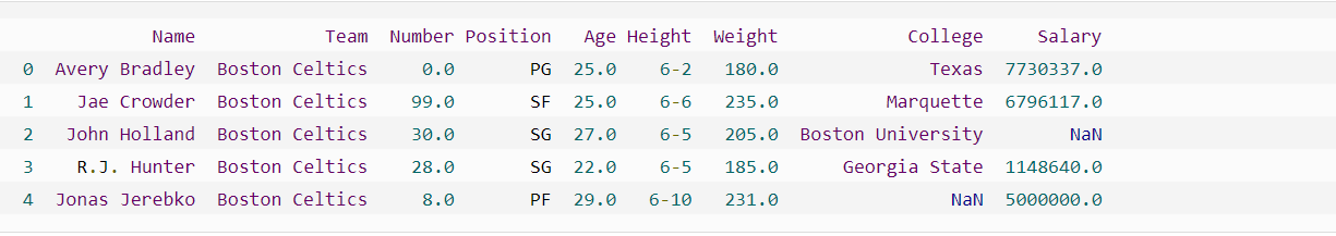 import pandas as pd df = pd.read_csv("nba.csv") print(df.head())