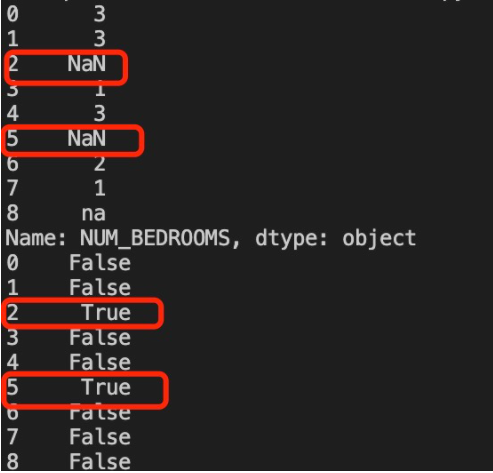 import pandas as pd df = read_csv("property-data.csv") print(df['NUM_BEDROOMS']) print(df['NUM_BEDROOMS']).isnull()