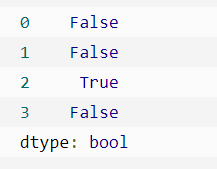 import pandas as pd person = { "name": ['Google', 'Runoob', 'Runoob', 'Taobao'], "age": [50, 40, 40, 23] df = pd.DataFrame(person) print(df.duplicated())