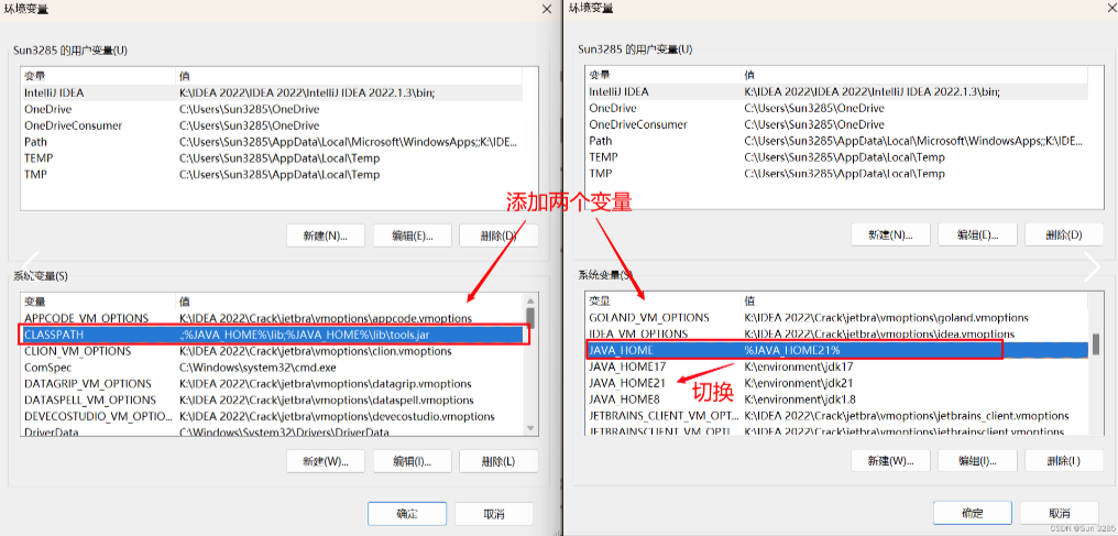 变量名为:JAVA_HOME21 ,如果有多个 JDK,变量名要有区别,如图所示