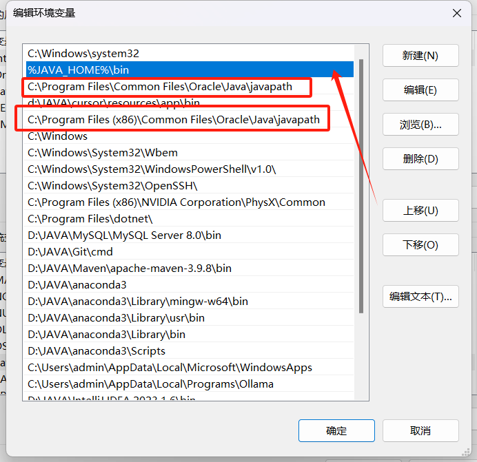 将%JAVA_HOME%\bin挪到红框的变量上面,红框是默认变量,系统是从上到下执行的