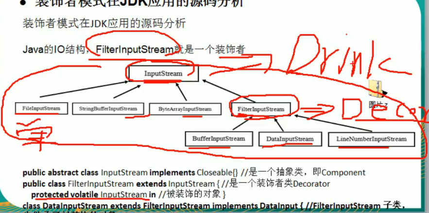 只有装饰类才能修饰具体类,具体类不是装饰类,如FileInputStream