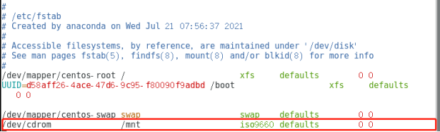 /dev/cdrom /mnt iso9660 defaults 0 0