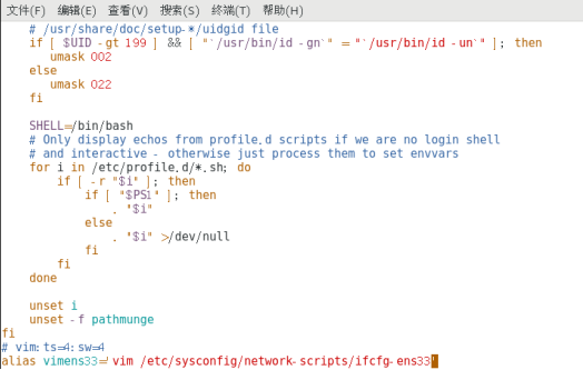 alias vimens33='vim /etc/sysconfig/network-scripts/ifcfg-ens33'